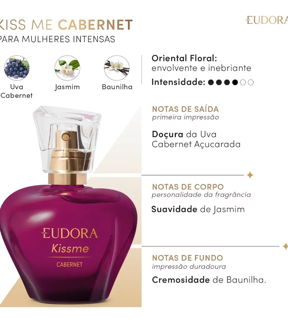 Descubra o charme intenso do Kiss Me Cabernet 50ml, uma fragrância marcante que combina notas envolventes para realçar sua presença. Ideal para quem busca um aroma duradouro e sofisticado, perfeito para ocasiões especiais ou momentos do dia a dia.