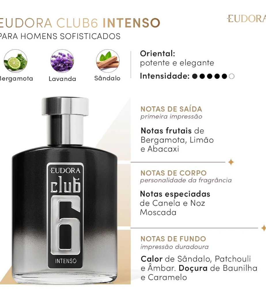 Eleve seu estilo e impressione onde quer que vá com Club 6 Intenso. Adquira agora e sinta a diferença.